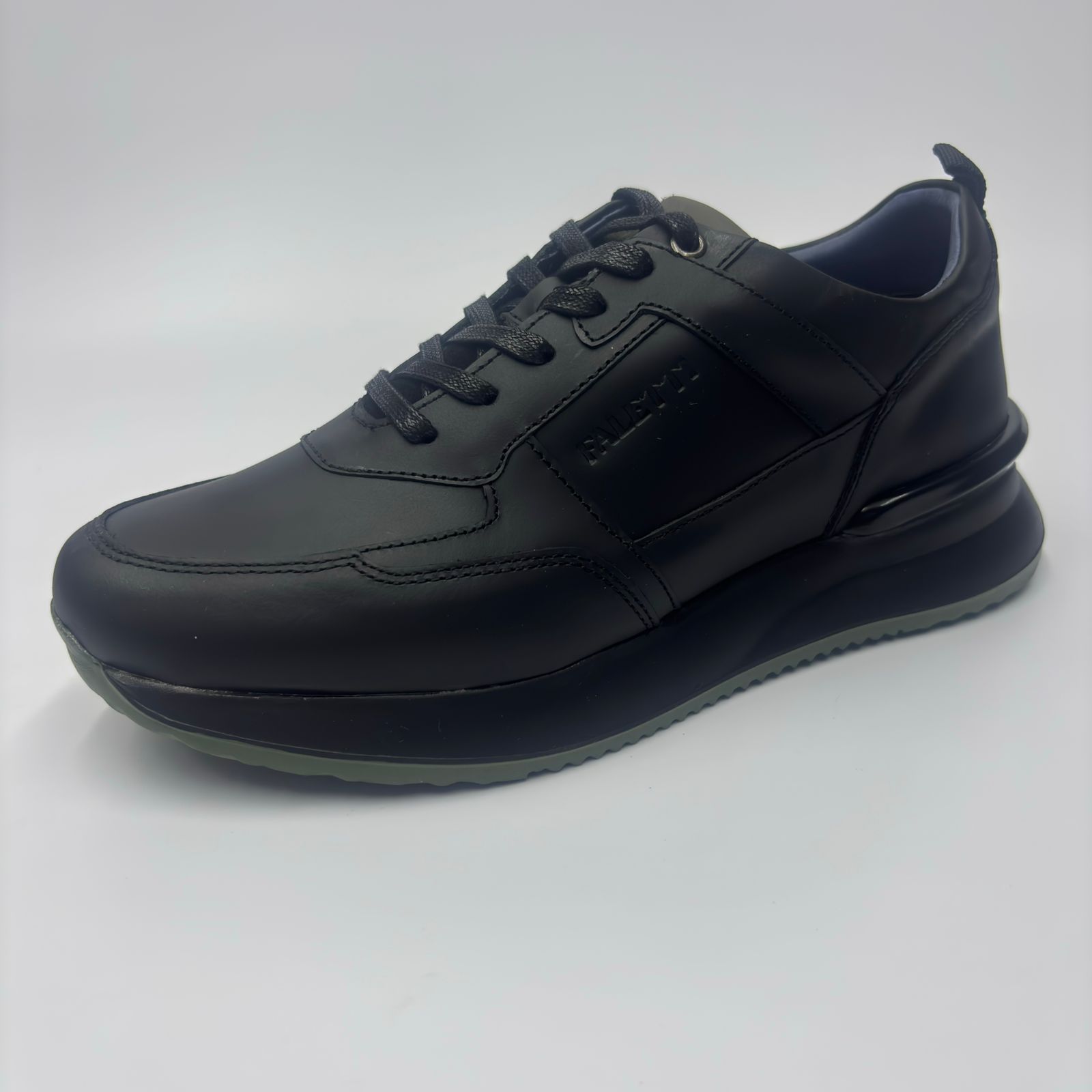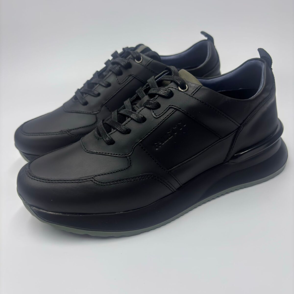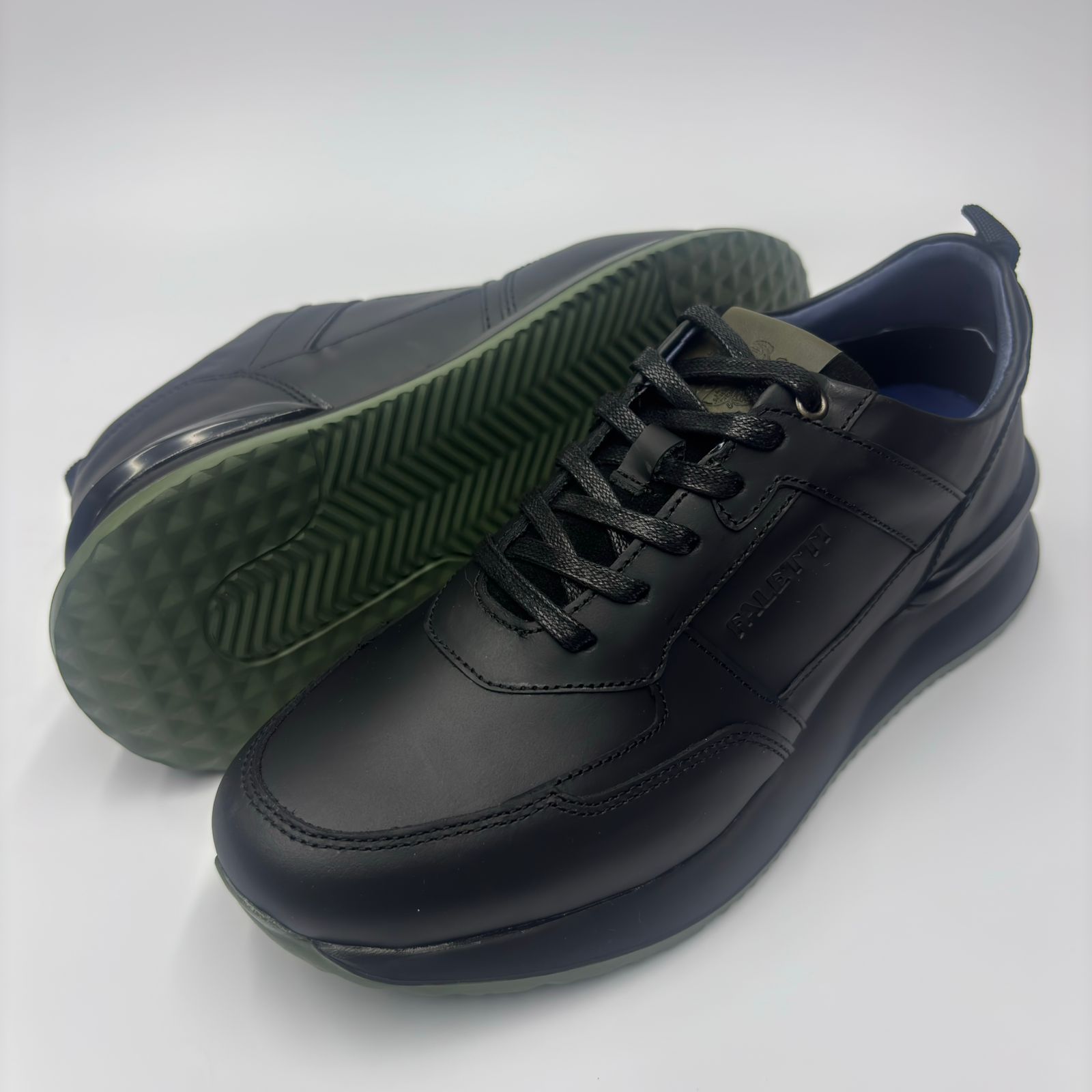 Cuenta con capellada en cuero liso mate, que aporta un acabado sobrio y elegante. Incorpora detalles en tono verde, visibles en la parte trasera y en la lengüeta, que generan un contraste moderno y sutil sin perder la estética discreta del calzado.